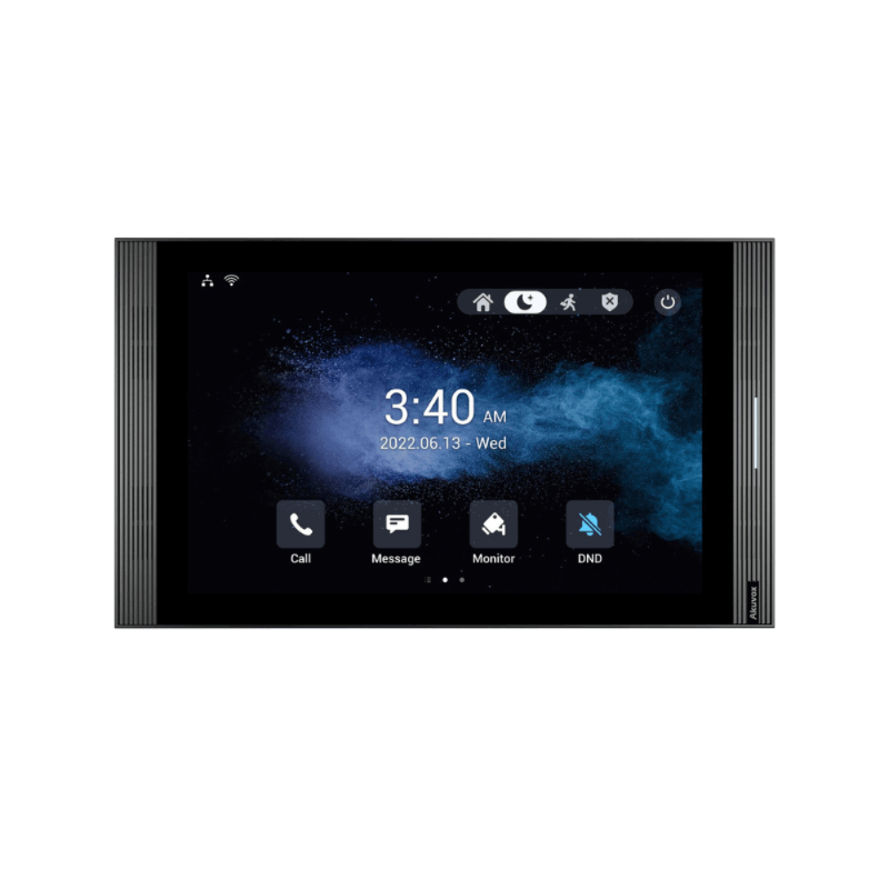Der Akuvox S567 10'' Innenmonitor läuft mit dem fortschrittlichen Betriebssystem Android 12 und ist mit der Wi-Fi 6-Kommunikationstechnologie ausgestattet. Die beiden Mikrofone und die vier Lautsprecher bieten eine erstklassige Audioqualität. Mit seinem minimalistischen Design fügt sich das S567 perfekt in jedes moderne Interieur ein.