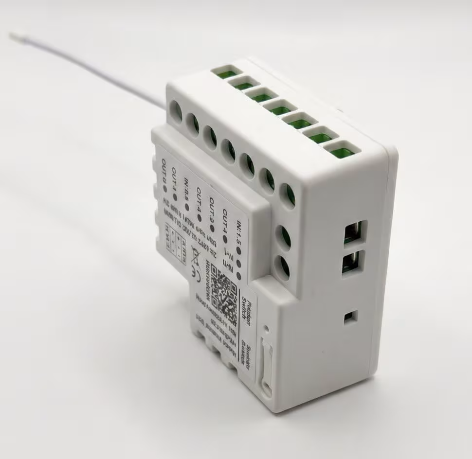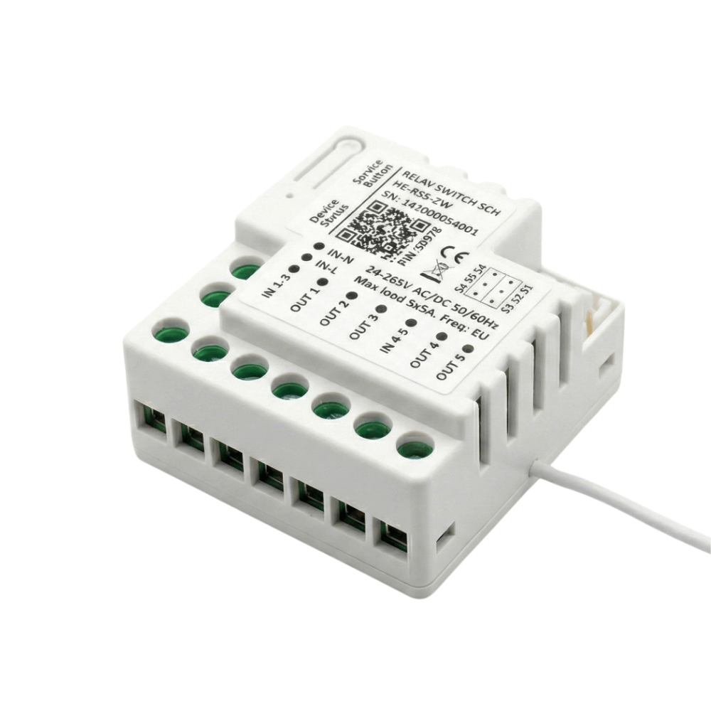 Der HELTUN HE-RS5-ZW (Relay Switch Quinto) verkörpert die Exzellenz der Miniaturisierung im Bereich der professionellen Z-Wave-Hausautomation. Dieses 5-Kanal-Mikromodul revolutioniert die Automatisierung bestehender Elektroinstallationen, indem es unauffällig hinter Wandschaltern oder in Elektroverteilern installiert wird. Dank seiner ultra-kompakten Abmessungen von nur 19 × 40 × 38 mm passt es mühelos in Unterputzdosen und Verteilerkästen.