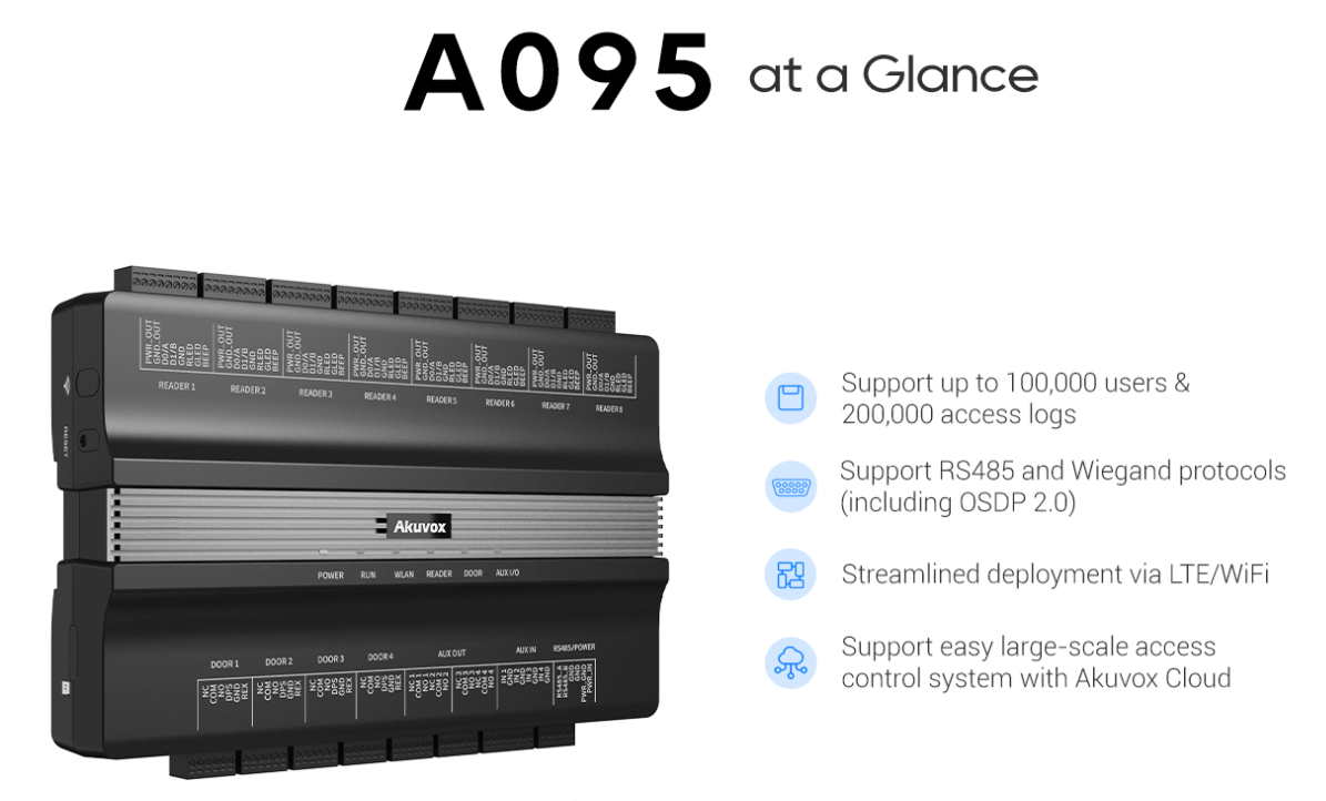 Akuvox A095S - Zutrittskontrollmodul 4 Türen | 100'000 Benutzer | PoE | Wi-Fi