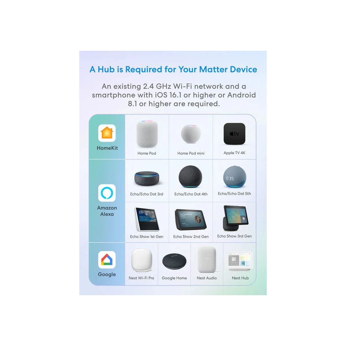 - Matter Simple Setup : Compatible avec Amazon Echo (compte Amazon identique requis)