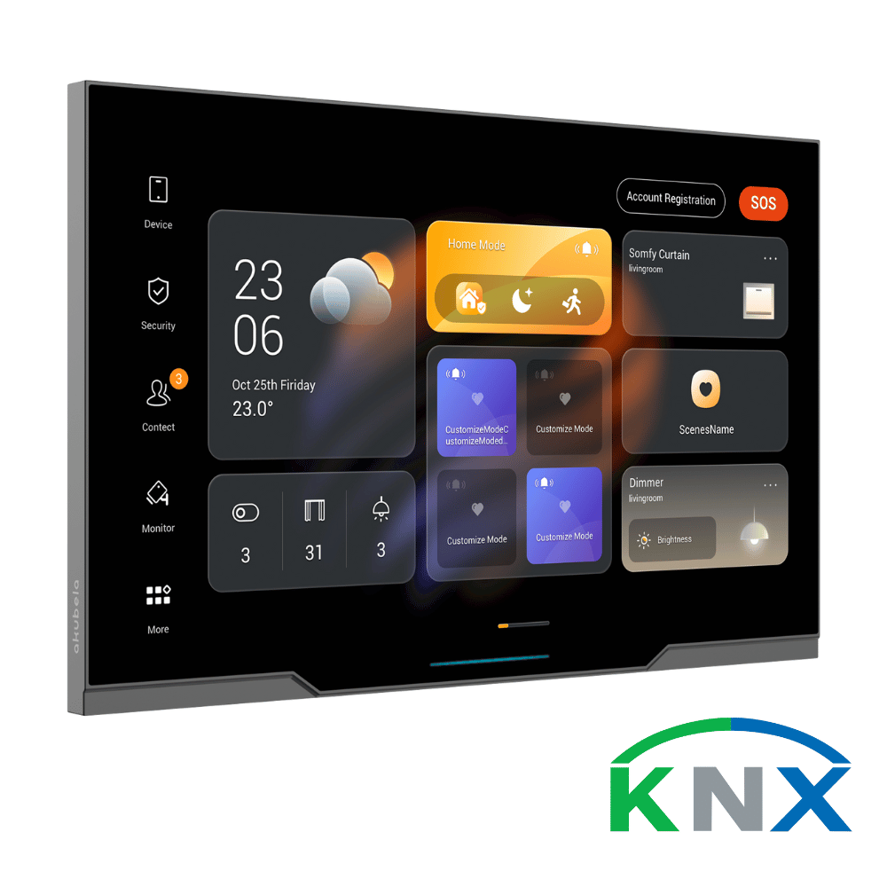 L'akubela HyPanel Ultra PH81-KNX-EU è il centro di controllo principale della vostra casa intelligente con integrazione nativa del protocollo KNX. Dotato di un touch screen da 10,36 pollici con luminosità di 360 nits e risoluzione 2K (2000×1200), dell'avanzato sistema operativo Android 12, di una serie di interfacce fisiche (Ethernet, contatti puliti, ingresso digitale) e di una connettività wireless flessibile (WiFi 6, Bluetooth 5.0, ZigBee 3.0), offre prestazioni di visualizzazione all'avanguardia e una perfetta integrazione con le installazioni KNX esistenti.