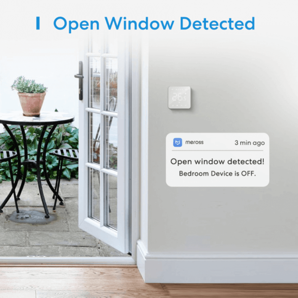 - Funzione di rilevamento finestra aperta. Interrompe automaticamente il riscaldamento quando viene rilevata una finestra aperta. Risparmia di più sulla tua bolletta del riscaldamento.
