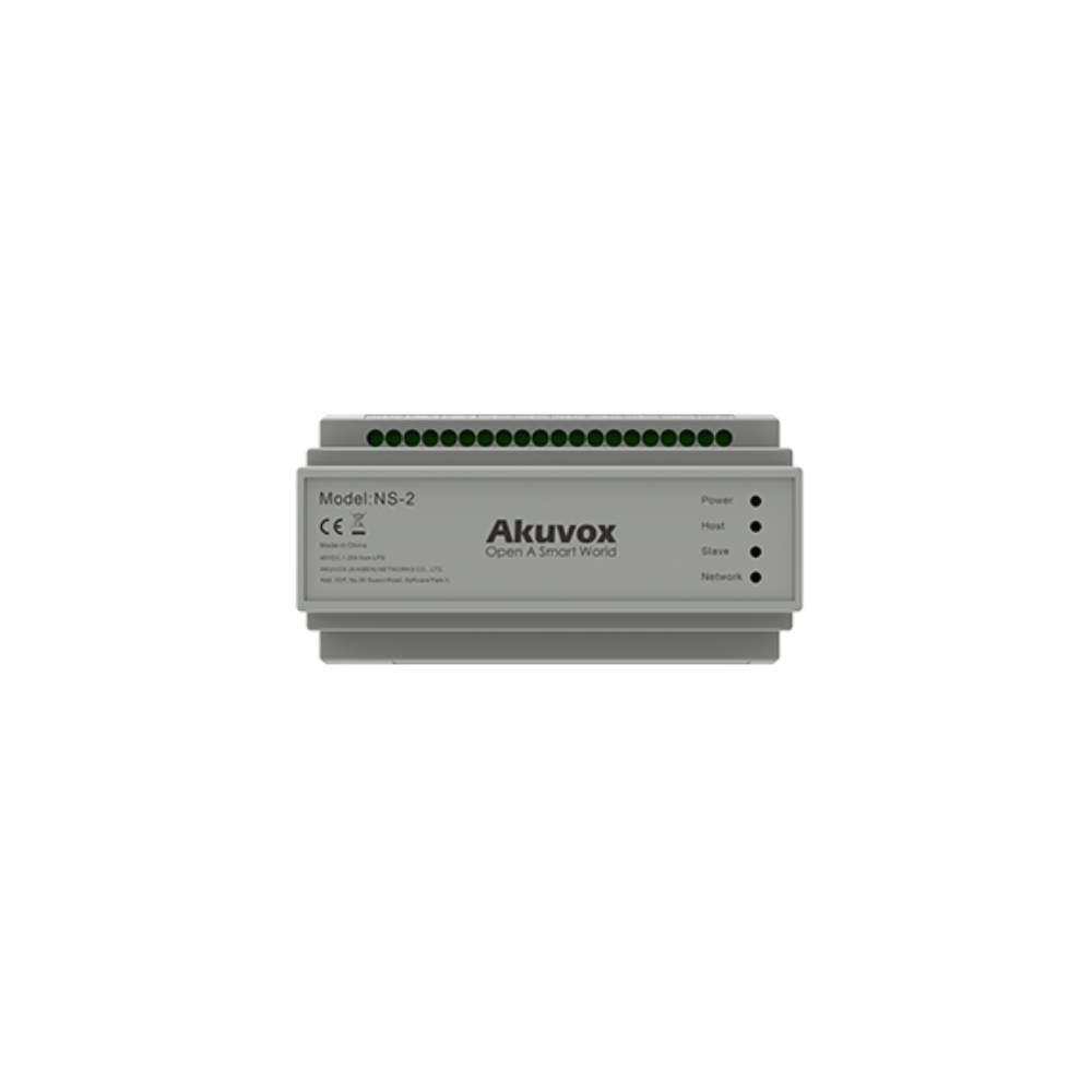 NS-2 è uno switch di rete IP Akuvox a 2 fili che offre un modo conveniente per aggiornare i sistemi interfonici analogici, senza dover rifare il cablaggio. La sua lunghissima distanza di trasmissione e la buona compatibilità con le linee esistenti gli consentono di adattarsi alla maggior parte dei vecchi edifici.